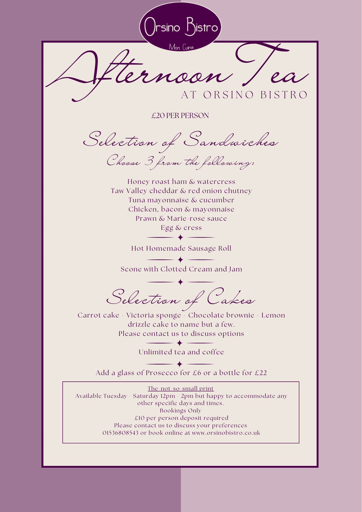 At Orsino Bistro, every dish begins with the freshest seasonal ingredients from trusted local suppliers. We believe that exceptional food starts with quality produce, shaped with care, passion, and a love for flavour. Join us for an unforgettable, home cooked meal filled with authentic, comforting tastes, served in the warm, friendly atmosphere of our Brigstock bistro
